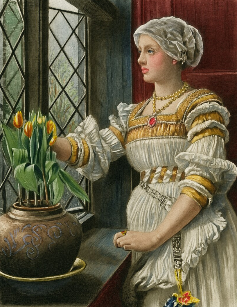 Mariana is een karakter in Shakespeares toneelstuk Measure for Measure uit 1604. De tulp is in 1562 vanuit Antwerpen in Europa geïntroduceerd en is afkomstig uit Turkije. De bloempot met de tulpen kan dus kloppen met de tijd.